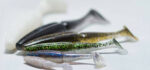Mon « grand » classique est le Hazedong shad dans sa version 3 pouces. Enfilé sur l’hameçon sur les pêches où je m’aide du courant, il sera malgré tout piqué par le nez pour les pêches plus statiques. Celà permet aussi de « finir » ces leurres lorsque ces derniers finissent en mauvais état après de multiples prises. La gamme de coloris est vaste, mais mon grand classique est clairement le « Pro blue » qui prend tout au long de l’année (même par eau teintée contrairement à la croyance populaire). « Green pumpkin shad » m’a rapporté bien des prises lui aussi, en particulier lors des passages répetés de péniches qui remuent le fond. « Psychedelic chart » permet lui aussi de tirer son épingle du jeu quand l’eau est très trouble, de même qu’un « Solid white » dans cette condition. Un coloris pailleté de type « Ablette » est enfin un bon complément lorsque le soleil brille très fort.