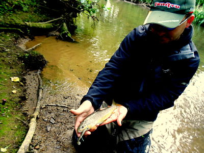Parlons leurres maintenant. En début de saison, j’aime bien attaquer sur des petits ruisseaux (jusqu’à un mètre de largeur) peu profonds (entre 30 et 50 cm), souvent, sur ce type de cours d’eau, il n’est par rare de rencontrer un reproducteur qui n’aura pas encore regagné la rivière principale et qui se saisira volontiers d’un leurre. Les Zipbait Rigge 35F couleurs 21 ou 810 sont des alliés de taille dans ces conditions.