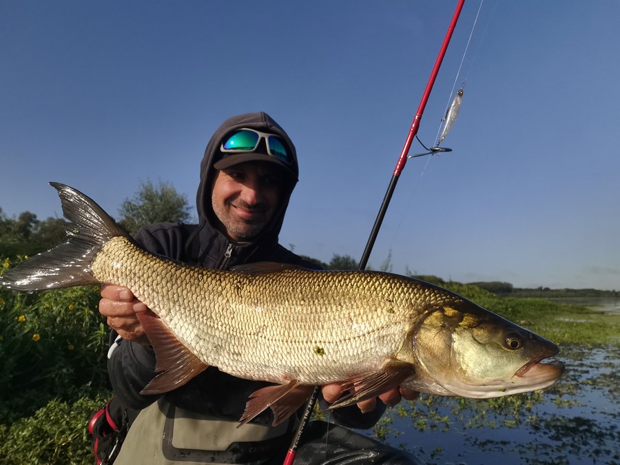 Pas de chichi sur les animations à la canne, non là c’est une question de rythme de récupération au moulinet. Il faut passer dans la couche d’eau juste au-dessus des herbiers pas trop vite. Si les petits sont intéressés, les plus gros aussi avec à la clef de jolis brocs de Loire, des décros, mais attention à la coupe, j’en ai fait les frais.