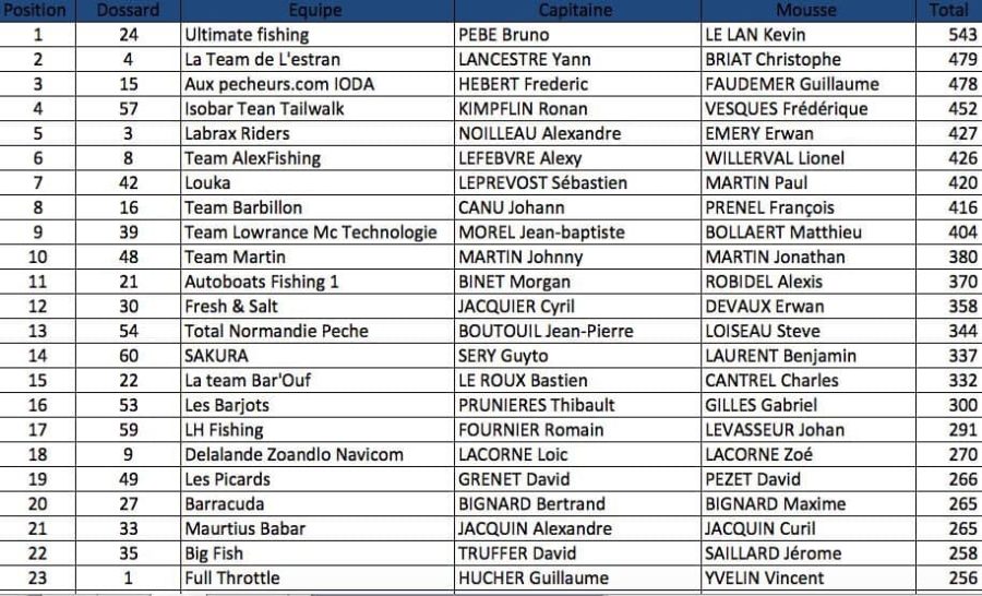 Des poissons entre 42 et 46 cm qui font énormément plaisir. Nous savons que la manche a été rude pour tout le monde, physiquement comme techniquement, à cause de cette mer formée, le vent et la difficulté de la zone.