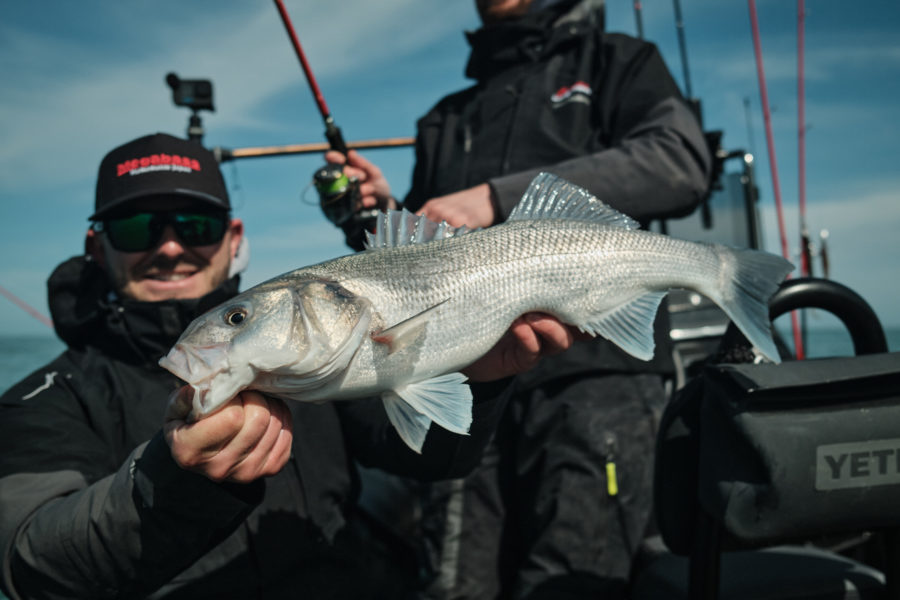 Pendant ce temps, Nicolas et Kevin passent au Sayori 14cm avec une tête plombée coyote en 32 g. Une tendance se dessine car ils enchaînent les jolis poissons. Ces derniers sont calibrés entre 55 et 60 cm. Avec une telle dérive, les sensations sont là ! Je décide de passer au Sayori 19 cm mais rien n’y fait, les bars ont ciblé la taille de leurs proies et on peut les voir régurgiter des lançons de 12 à 15cm ! Assez rapidement je décide également de passer au Sayori 14cm histoire de profiter de l’activité et le ton était donné ! Il n’y a pas une dérive à vide, nous prenons chacun un à deux poissons par dérive.