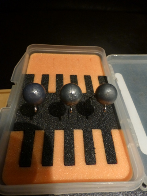 Mes premier tests je les ai effectués sur des parties ciblées du leurre. La première chose à laquelle j’ai naturellement pensé c’était à la tête plombée. Un petit coup de pinceau et j’avais déguisé certaines de mes têtes plombées sans que mes amis remarquent quoique se soit ! 😉 Pour que les tests apportent des résultats probants , j’ai alterné sans arrêt tête UV et tête classique. Les têtes peintes se sont bien démarquées et cela était encore plus vrai lorsque les facteurs se multipliaient :