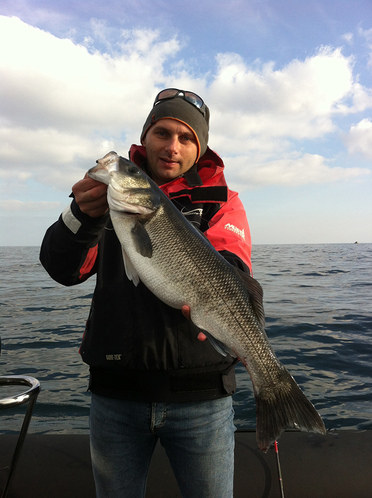Dimanche. La première chose à dire c’est que c’est assez difficile de renoncer à sa petite pêche du bord après une session aussi courte et efficace que celle de la veille… Mais c’est aussi un plaisir de me refaire une partie de pêche en bateau avec mon pote Charles, la dernière commençait à dater. On embarque Cédric avec nous et c’est parti pour explorer les rochers, bancs de sable et herbiers du pays bigouden. Ça fait un an que nous n’avons pas pêché sur la zone choisie et nous n’avons pas d’échos de ce qui s’y est pris ou non ces dernières semaines. Après quelques heures de dérives stériles (sauf si on compte les petits lieus, les maquereaux espagnols, les vieilles et les orphies), on finit par trouver le premier bar sur une zone d’alternance sable/laminaires. On creuse dans ce sens et on fait tourner les leurres.